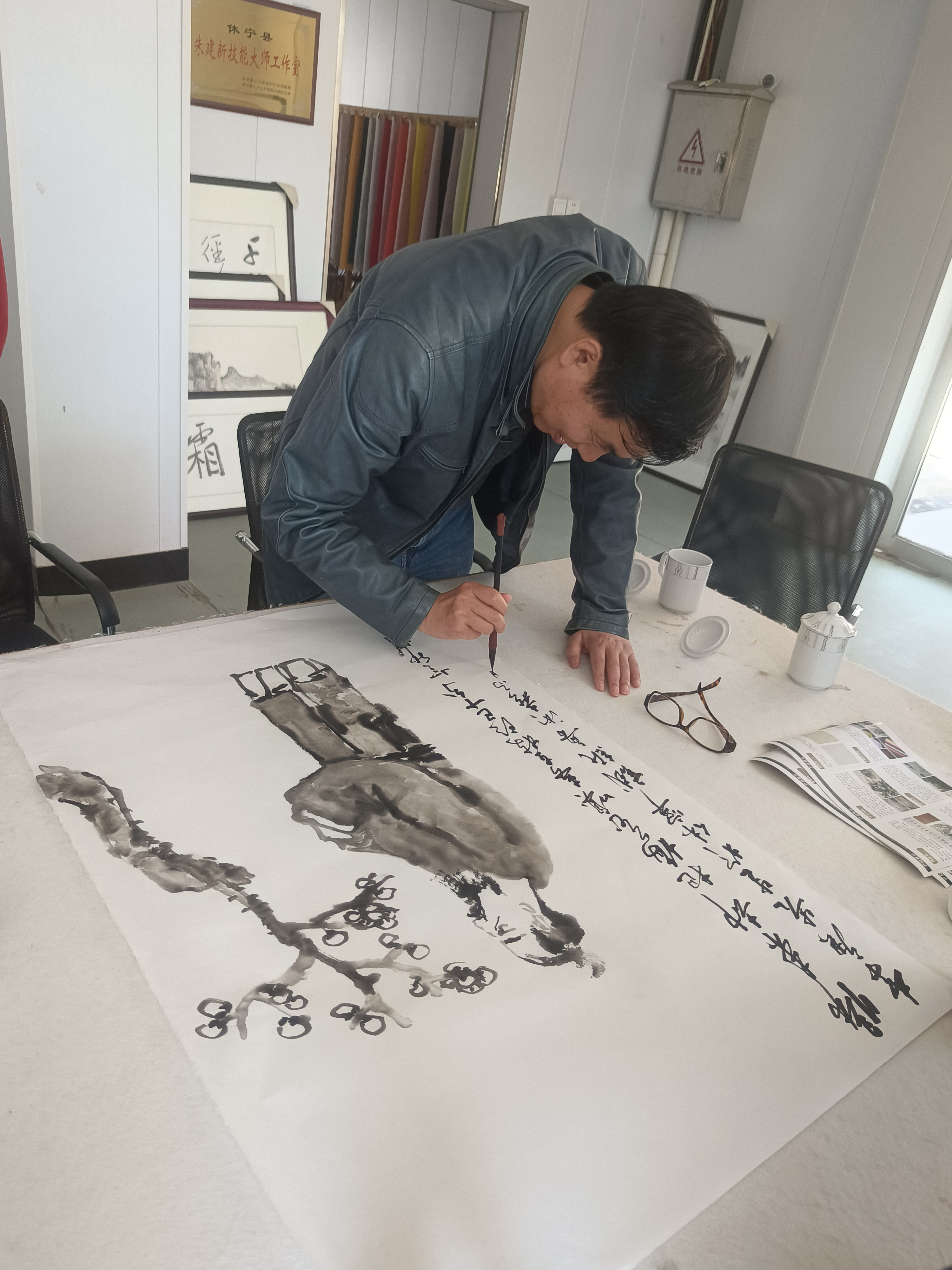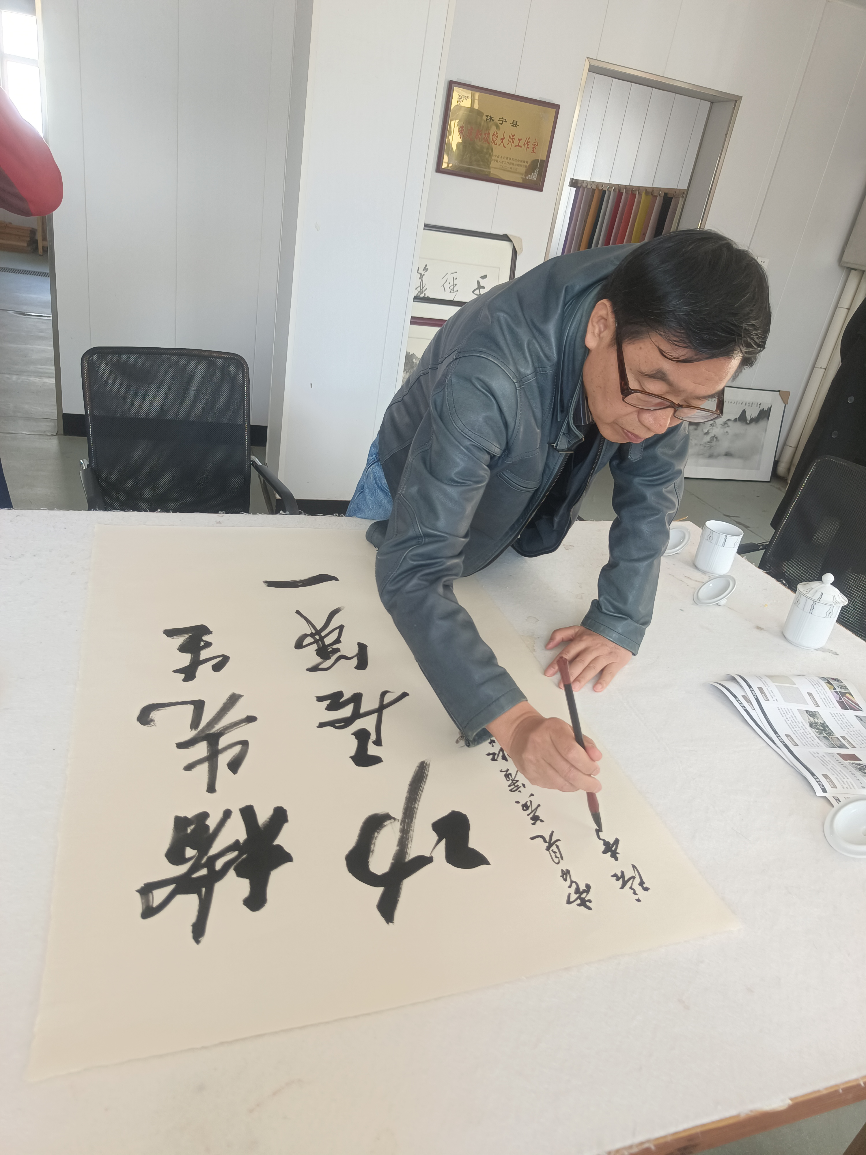 近距離觀摩大師創(chuàng)作,著名畫(huà)家李庚老師和著名文化學(xué)者、書(shū)法家王魯湘老師抽出寶貴時(shí)間來(lái)公司指導(dǎo)試筆,并為我們留下三幅珍貴墨寶,這是對(duì)我們做徽州皮紙的肯定,也是對(duì)我們的鞭策,使我們更有信心堅(jiān)守敬畏之心,匠人精神,做出更好的徽州皮紙。感謝安徽書(shū)法協(xié)會(huì)會(huì)長(zhǎng)王云龍全程陪同