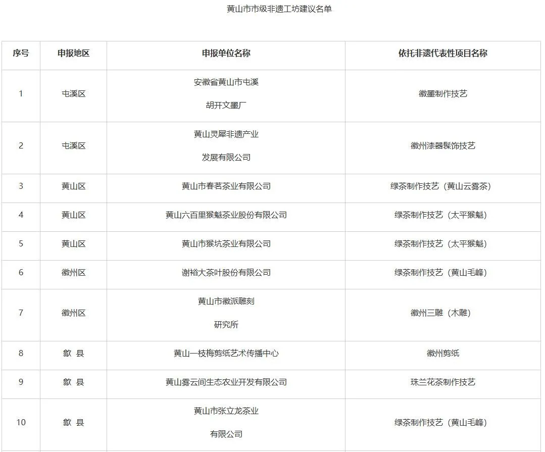 市級非遺工坊建議名單公示,休寧3家入榜!